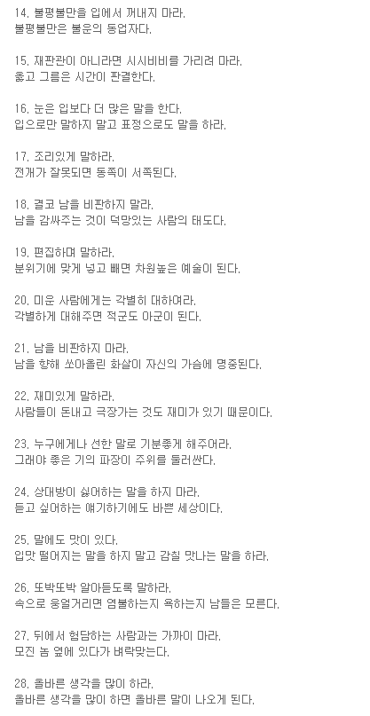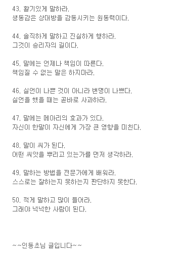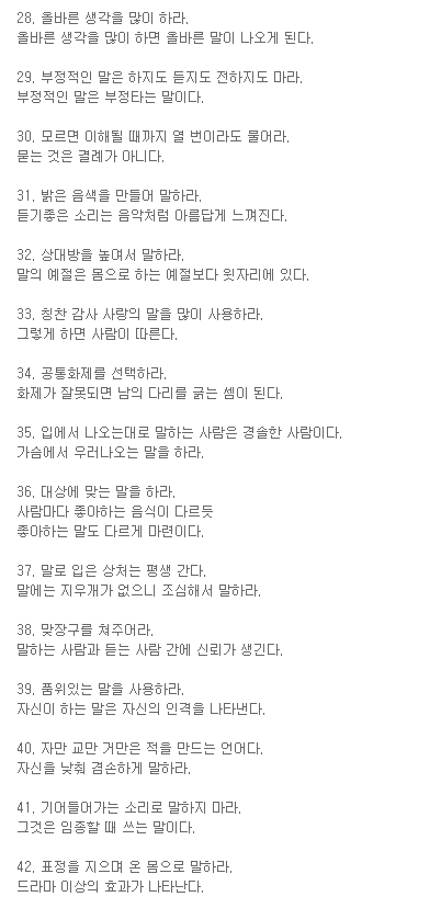 그런데 읽어보다보니, 이건 꼭 말 잘하는 방법뿐 아니라 인생을 잘 사는 방법에도 될것 같군요. 참고하세요.